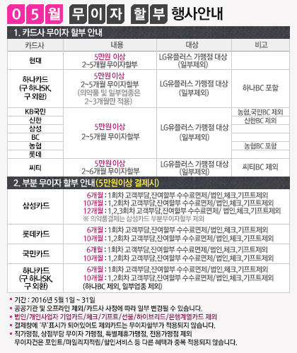 2016년 05월 카드 무이자 할부 행사안내입니다. (부분 무이자포함)