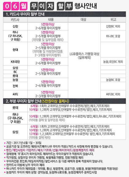 [B2C스픽업] 2017년 6월 무이자 카드행사 안내