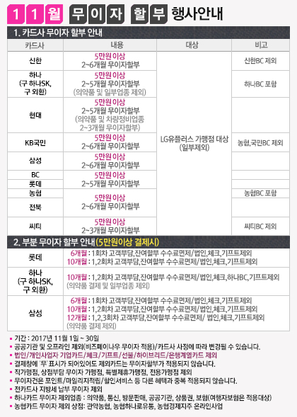 2017년 11월 카드 무이자 할부 행사안내입니다. (부분 무이자포함)