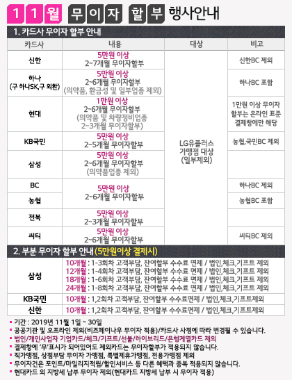 2019년 11월 카드 무이자 할부 행사안내입니다. (부분 무이자 포함)