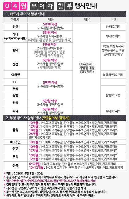 2020년 04월 카드 무이자 할부 행사안내입니다. (부분 무이자 포함)