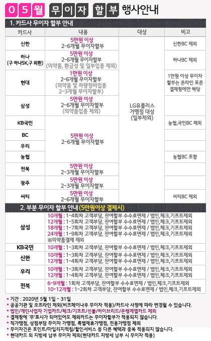 2020년 05월 카드 무이자 할부 행사안내입니다. (부분 무이자 포함)