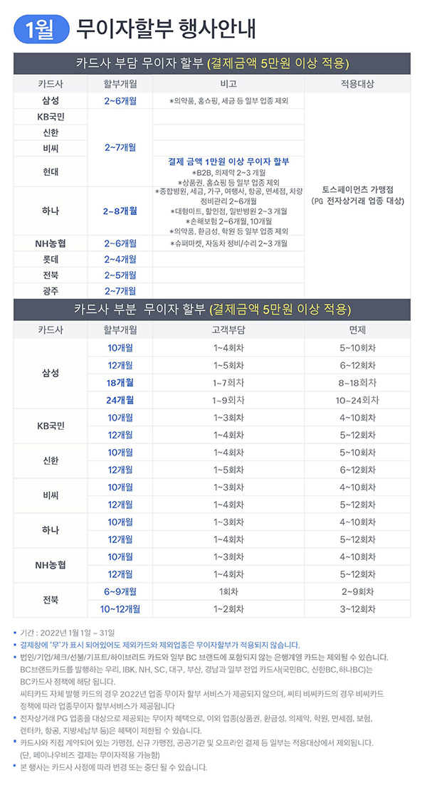 [B2C스픽업] 2022년 1월 무이자 카드 행사안내 날짜 : 2022-01-03   조회수 : 1605
