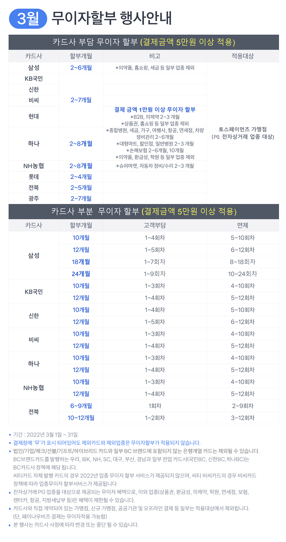 [B2C스픽업] 2022년 3월 무이자 카드 행사안내 날짜 : 2022-03-04   조회수 : 1536