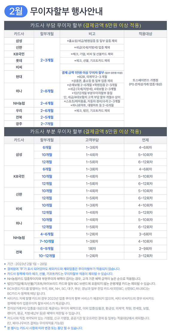 [B2C스픽업] 2023년 2월 무이자 카드 행사안내 날짜 : 2023-02-01   조회수 : 1099