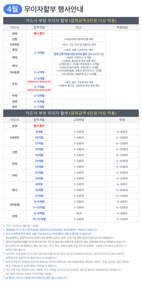 [B2C스픽업] 2023년 4월 무이자 카드 행사안내 날짜 : 2023-04-03   조회수 : 1327