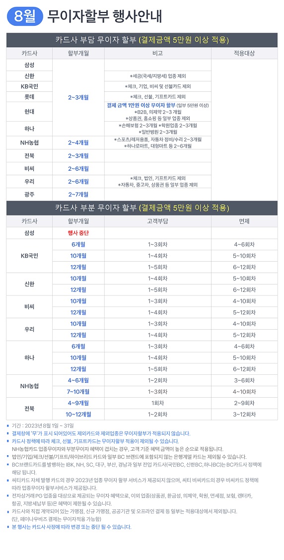 [B2C스픽업] 2023년 8월 무이자 카드 행사안내 날짜 : 2023-08-01   조회수 : 1144