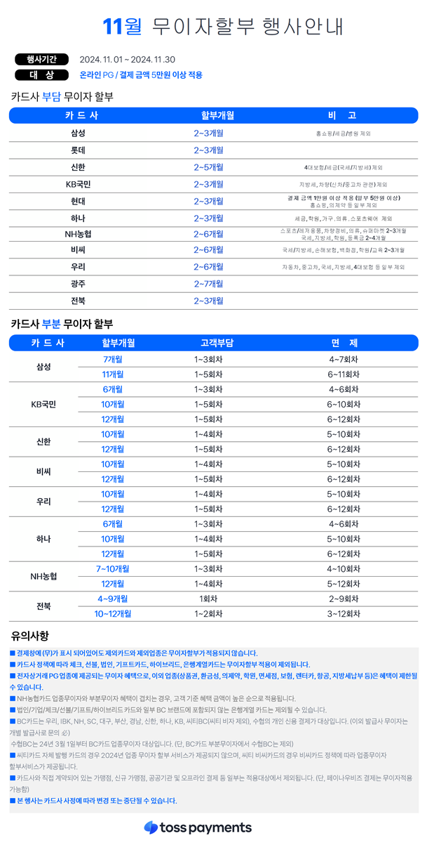 [B2C스픽업] 2024년 11월 무이자 카드 행사안내 날짜 : 2024-11-01   조회수 : 528